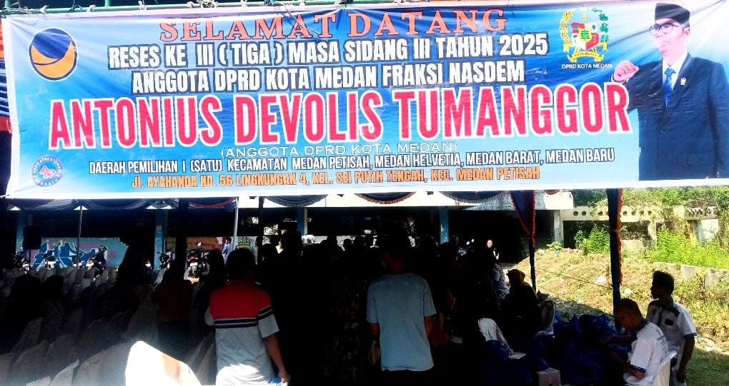 Anggota Dewan Perwakilan Rakyat Daerah (DPRD) Kota Medan dari Fraksi NasDem Antonius Devolis Tumanggor S.Sos, menggelar kegiatan Reses ke III Masa Sidang III Tahun 2025, di Jl. Ayahanda no.56, Ling.4, Kel.Sei Putih Tengah, Kecamatan Medan Petisah, pada Sabtu.(26/7/25)