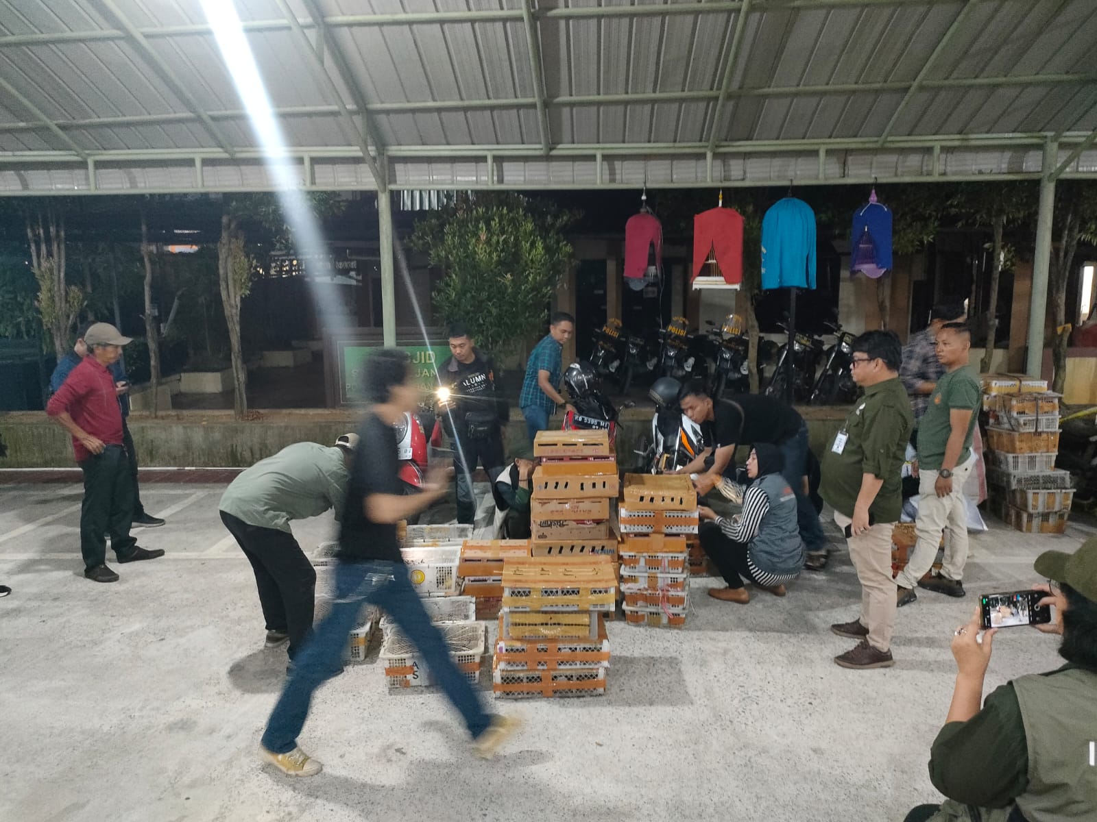 Operasi Penangkapan yang dipimpin langsung Kapolsek Pontianak Utara AKP Suryadi, SH. M. Ap dan Kasatpolhut BKSDA Kalbar Paramita Rosandi SH Sukses mengamankan ratusan jenis satwa dilindungi jenis burung.