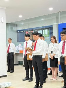 Sejak pagi hari, atmosfer peringatan telah terasa. Prosesi dimulai dengan pengibaran Sang Merah Putih diiringi lagu kebangsaan Indonesia Raya yang menggema khidmat. Seluruh peserta berdiri tegap, menundukkan hati, seakan mengingat kembali pengorbanan para pahlawan yang mempertahankan ideologi bangsa. Setelah itu, pembacaan teks Pancasila dan Undang-Undang Dasar 1945 menjadi penegasan bahwa nilai luhur bangsa tidak boleh lekang dimakan zaman, melainkan harus dihidupi dalam kehidupan berbangsa, bernegara, dan juga dalam dunia kerja profesional.