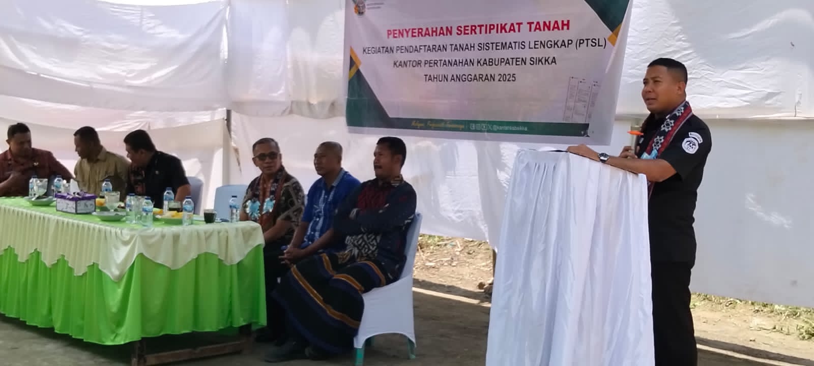 Sertifikasi tanah warga ini diterbitkan oleh Kantor Badan Pertanahan Nasional(BPN) Kabupaten Sikka melalui program Pendaftaran Tanah Sistematis Lengkap (PTSL) Tahun Anggaran 2025.