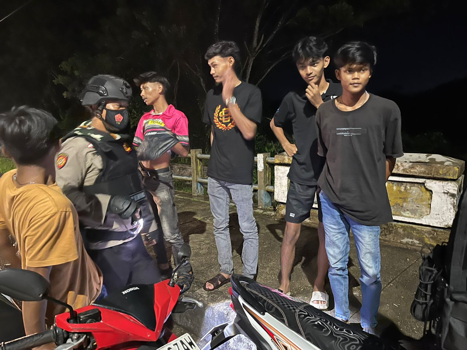 Selain itu, dilakukan pula pemeriksaan terhadap individu yang dicurigai membawa senjata tajam guna mencegah terjadinya tindak kriminalitas.