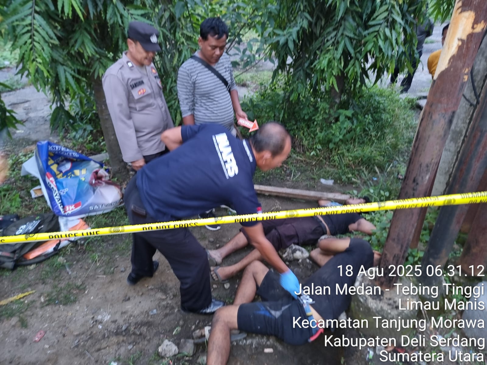 Dua orang terduga pencuri tiang besi milik PT Telkom meninggal dunia saat mencabut tiang besi yang lagi tegak di depan X jembatan timbangan milik DLLAJ jalan lintas Medan Tanjung Morawa KM 14.5 dusun I kabupaten Deli Serdang provinsi Sumatera Utara Senin (18/8/25) pukul 05.15 wib.