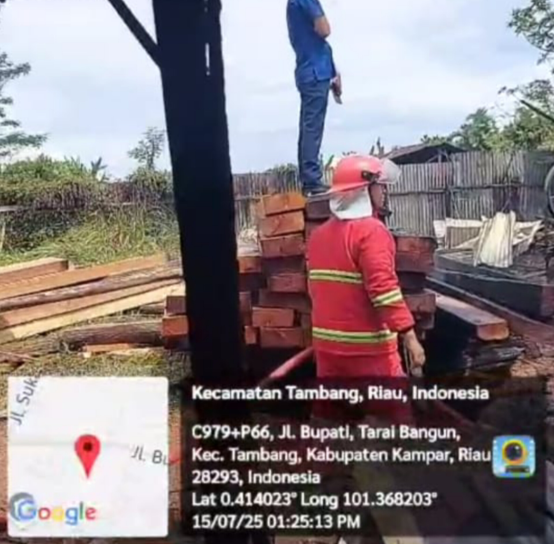 Kampar, Sidik-Investigasi.com – Telah terjadi insiden kebakaran di gudang kayu (somel) yang berlokasikan di Jalan Bupati, Tirai Bangun, Kecamatan Tambang, Kabupaten Kampar, Riau. Selasa (15/07/2025)