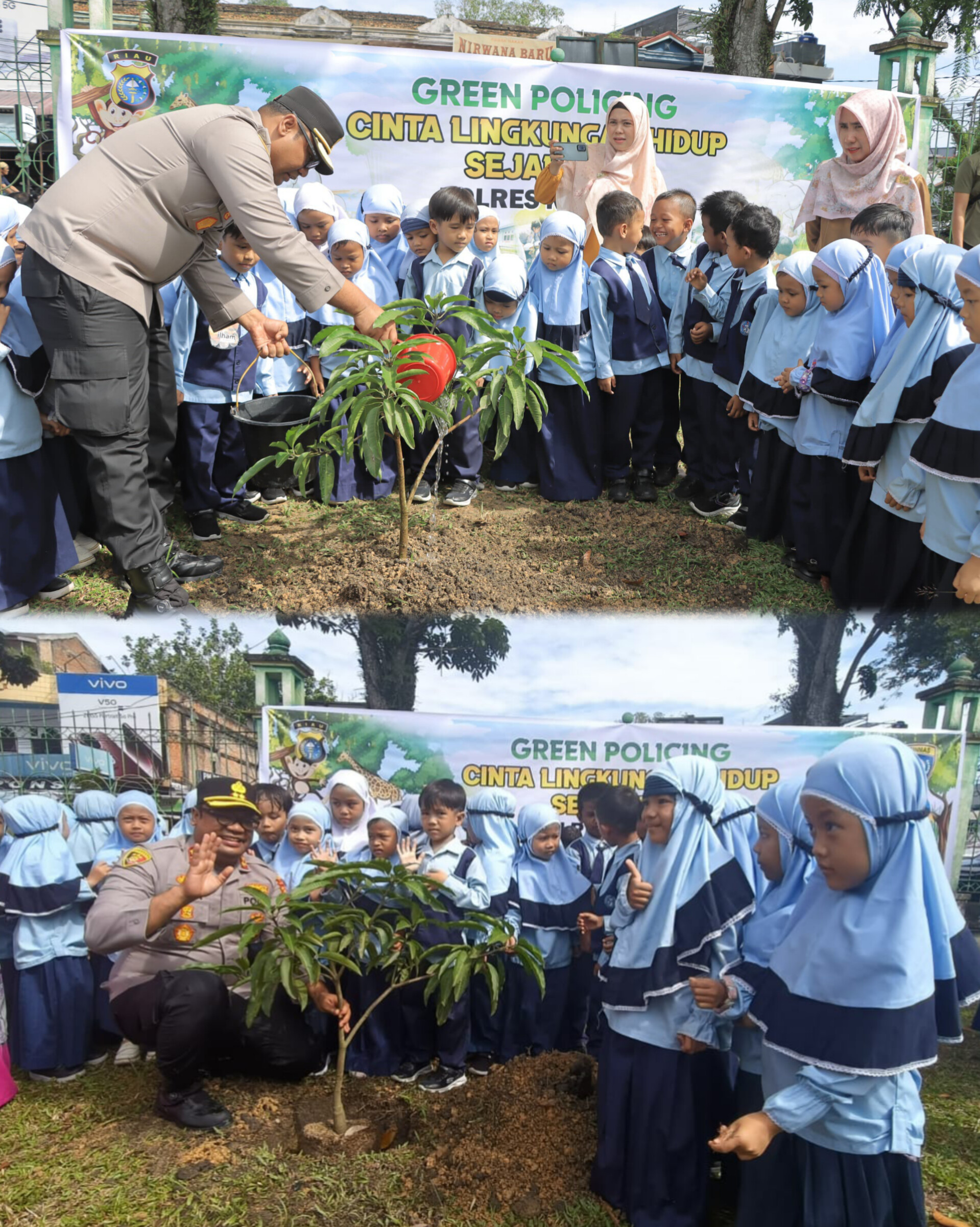 Sebagai simbol komitmen terhadap pelestarian lingkungan, Kapolres Kampar beserta rombongan melakukan penanaman bibit pohon mangga, alpukat, dan lengkeng di lingkungan TK Pertiwi.