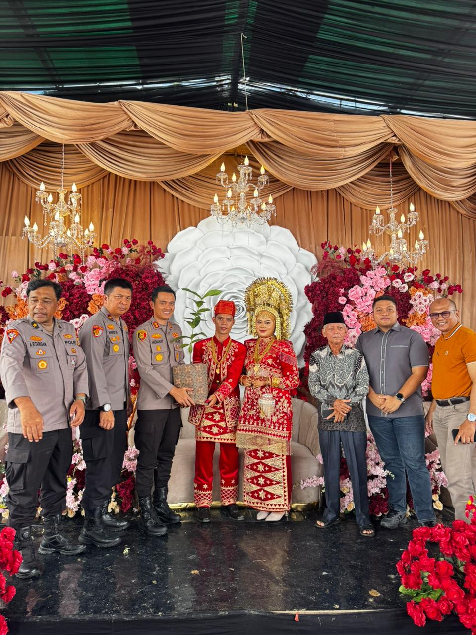 Sebagai wujud nyata dukungan terhadap pelestarian lingkungan, Kapolres menyerahkan bibit pohon kepada kedua mempelai.
