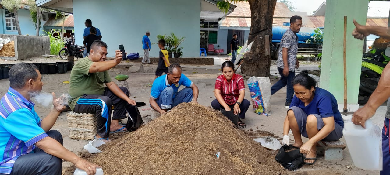 Mama Tres demikian disapa mengatakan polibag dikerjakan oleh pihak ASN karena proses pengerjaannya berat yang tidak bisa dilakukan oleh para Lansia.