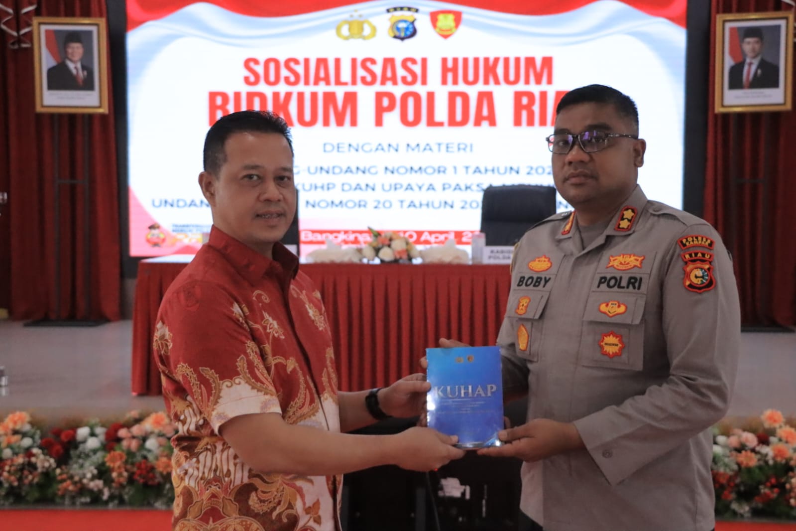 Tim narasumber dari Bidkum Polda Riau yang dipimpin oleh KBP Mohamad Qori Oktohandoko, terdiri dari Pembina I Nerwan, AKP Hebreweni, IPTU Dedi Suharyoso, Brigadir Shailma Nisatul Asmaul Husna, , dan Bripda Tengku Al-Aqsha Lopi. Mereka menyampaikan materi terkait dua poin utama : Arah Baru Pidana Indonesia berdasarkan UU Nomor 1 Tahun 2023 tentang Kitab Undang-Undang Hukum Pidana (KUHP), serta aturan tentang Upaya Paksa menurut UU Nomor 20 Tahun 2025 tentang Kitab Undang-Undang Hukum Acara Pidana (KUHAP).