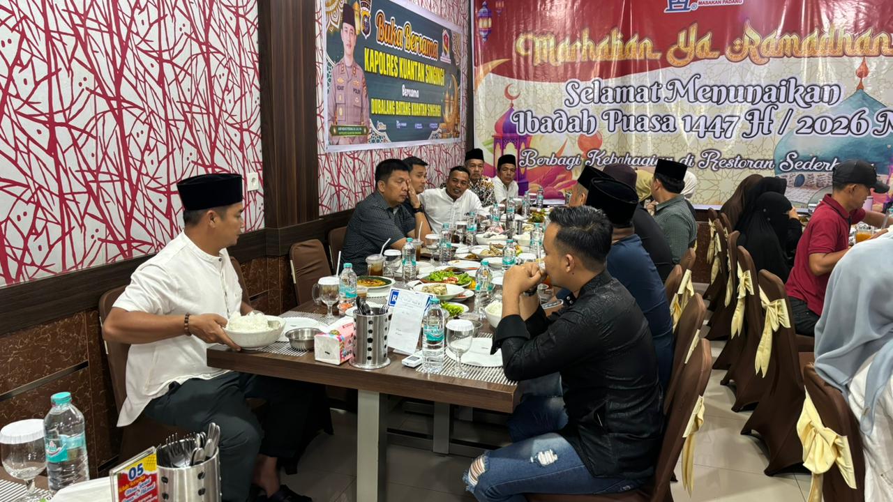 Sidik-Investigasi.Com – Kuantan Singingi – Dalam suasana penuh kebersamaan di bulan suci Ramadan 1447 H, Kapolres Kuantan Singingi (Kuansing) AKBP Hidayat Perdana, S.H., S.I.K., M.H., melaksanakan kegiatan buka puasa bersama Dubalang Kabupaten Kuantan Singingi, sekira pukul 18.00 WIB. Senin (02/03/2026).