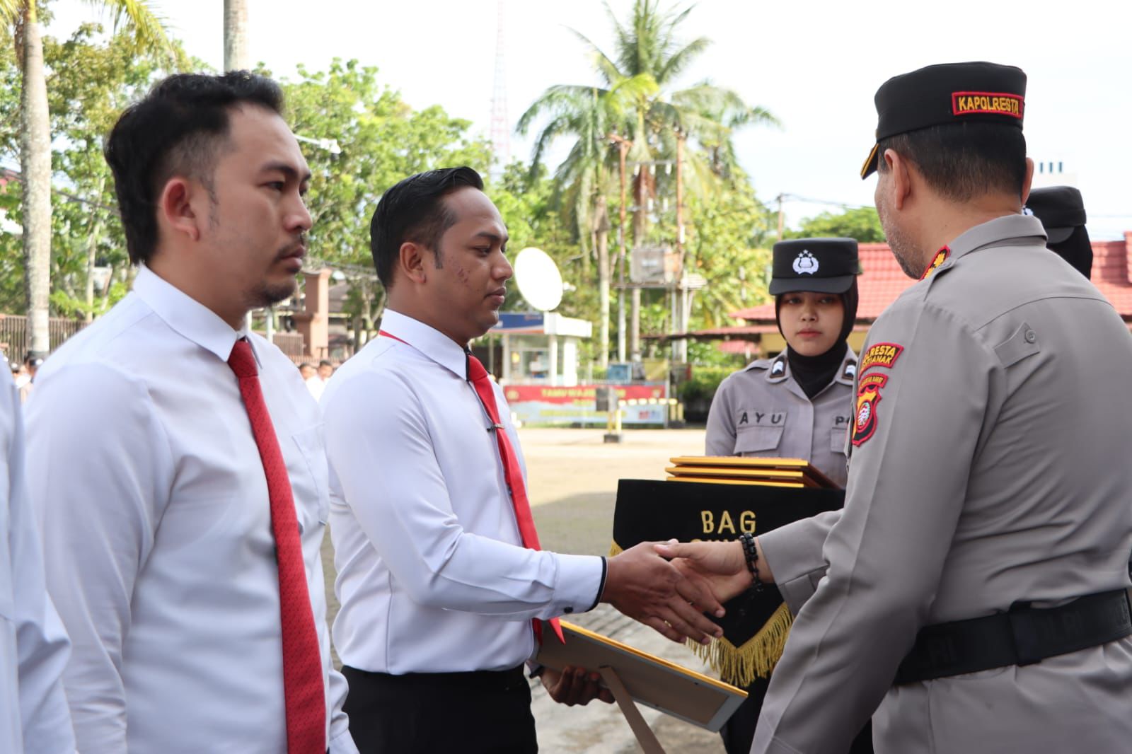 Dalam sambutannya, Kapolresta menyampaikan rasa bangganya atas kinerja para personel yang telah menunjukkan profesionalisme, keberanian, dan komitmen tinggi dalam menjalankan tugas kepolisian.