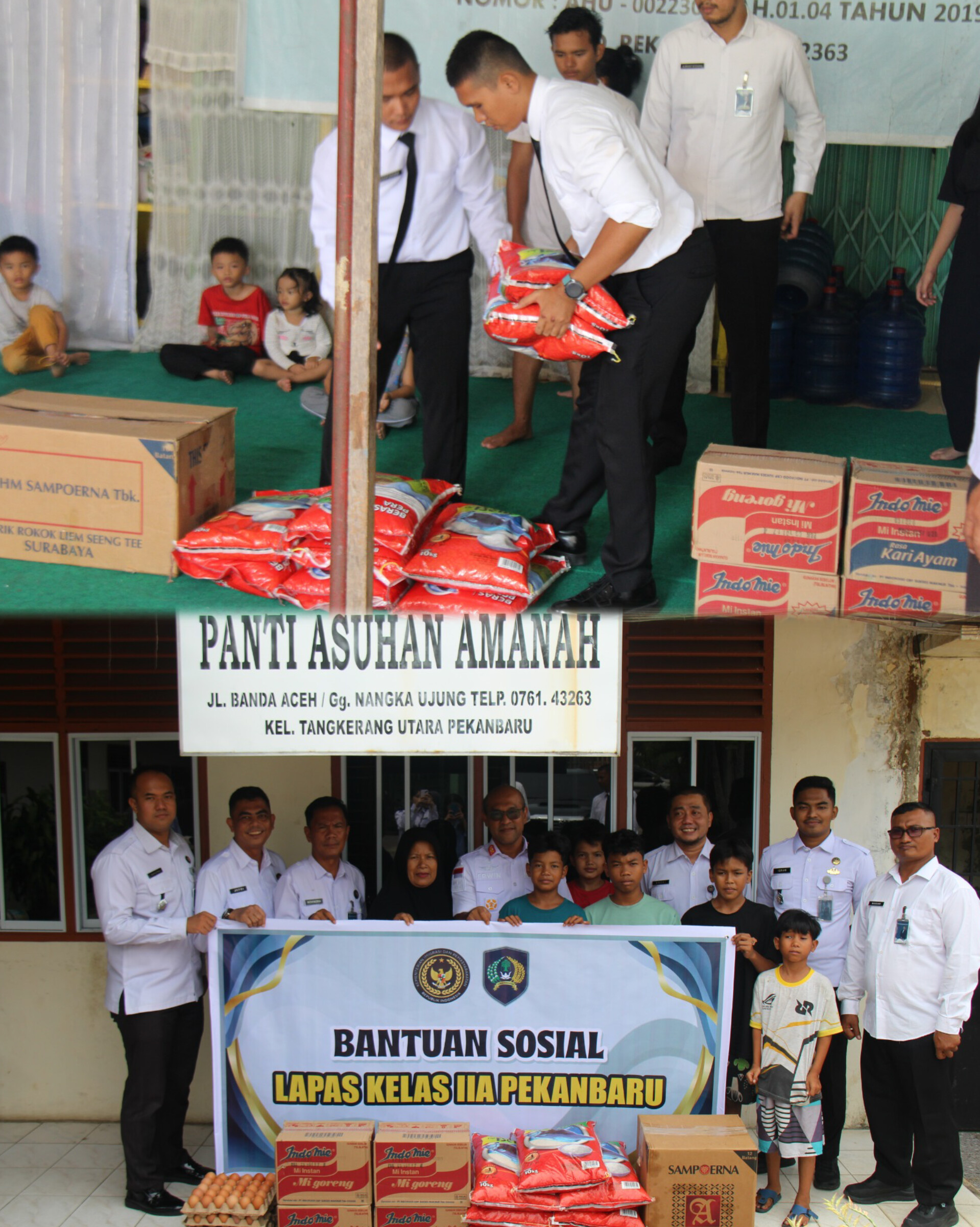 “Lapas Pekanbaru menggelar kegiatan bakti sosial sebagai bentuk nyata dari komitmen kami dalam penguatan reintegrasi sosial, kepedulian kemanusiaan, serta implementasi Asta Cita Presiden dan 13 Program Akselerasi Menteri Imigrasi dan Pemasyarakatan. Ini bukan sekadar bentuk bantuan materi, tetapi juga silaturahmi dan kepedulian kami terhadap sesama, kami ingin terus menjalin hubungan baik dengan masyarakat, termasuk lembaga sosial yang berperan membina generasi penerus bangsa,” ungkap Erwin.