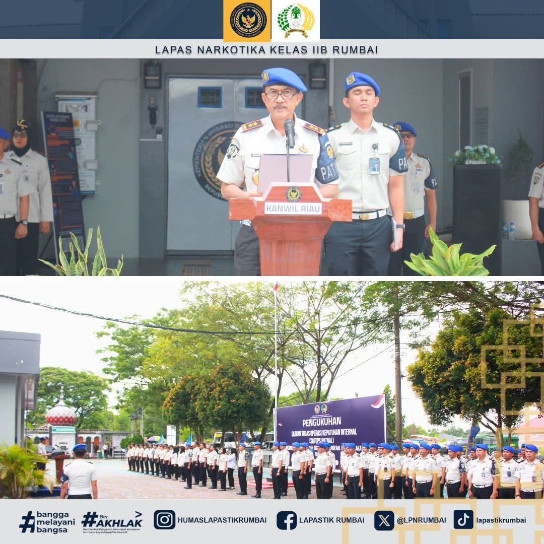 Sidik-investigasi.com – Pekanbaru – Kepala Kantor Wilayah Direktorat Jenderal Pemasyarakatan Riau, Maizar, secara resmi mengukuhkan Petugas Satuan Tugas Operasi Kepatuhan Internal (Satops Patnal) di lingkungan Kantor Wilayah Direktorat Jenderal Pemasyarakatan Riau.