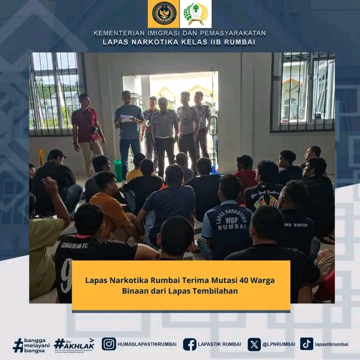 Sidik-investigasi.com – Pekanbaru – Lembaga Pemasyarakatan (Lapas) Narkotika Kelas IIB Rumbai kembali menerima mutasi warga binaan dari Lapas Kelas IIA Tembilahan.