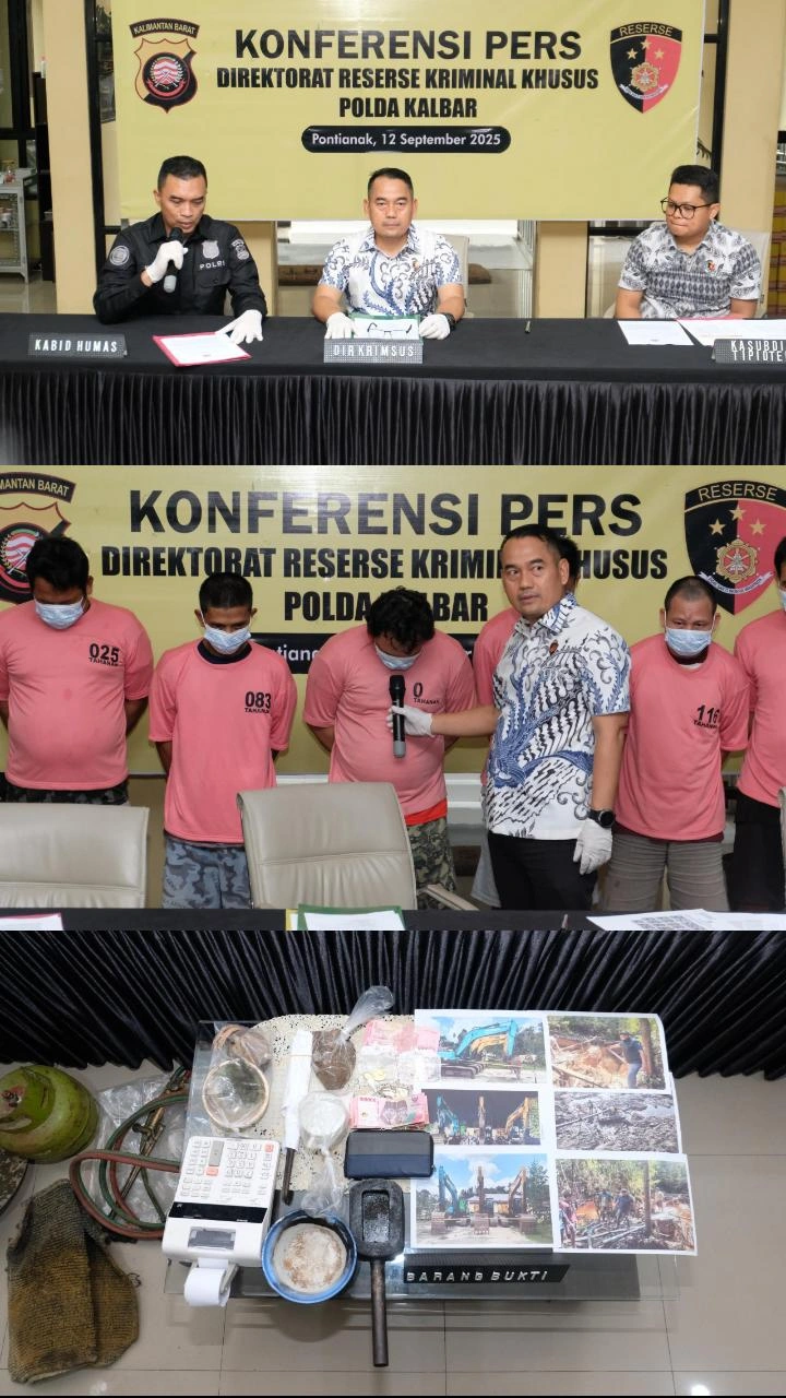 Sidik.investigasi.com PONTIANAK, Polda Kalbar — Direktorat Reserse Kriminal Khusus (Ditreskrimsus) Polda Kalimantan Barat menggelar konferensi pers pengungkapan 29 kasus penambangan emas tanpa izin (PETI) dalam Operasi Kepolisian Kewilayahan Peti Kapuas 2025, Jumat (12/9).