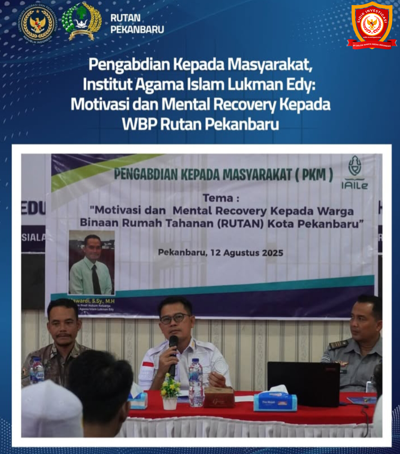 Pekanbaru, Sidik-Investigasi.Com – Selasa (12/08/2025) Rutan Kelas I Pekanbaru menerima kunjungan istimewa dari mahasiswa Jurusan Hukum Keluarga Institut Agama Islam Lukman Edy dalam rangka kegiatan pengabdian kepada masyarakat, Kegiatan yang mengangkat tema Motivasi dan Mental Recovery kepada Warga Binaan Pemasyarakatan (WBP) ini diharapkan dapat menjadi penyemangat dari sarana pemulihan mental bagi para WBP dalam menjalani masa pembinaan.