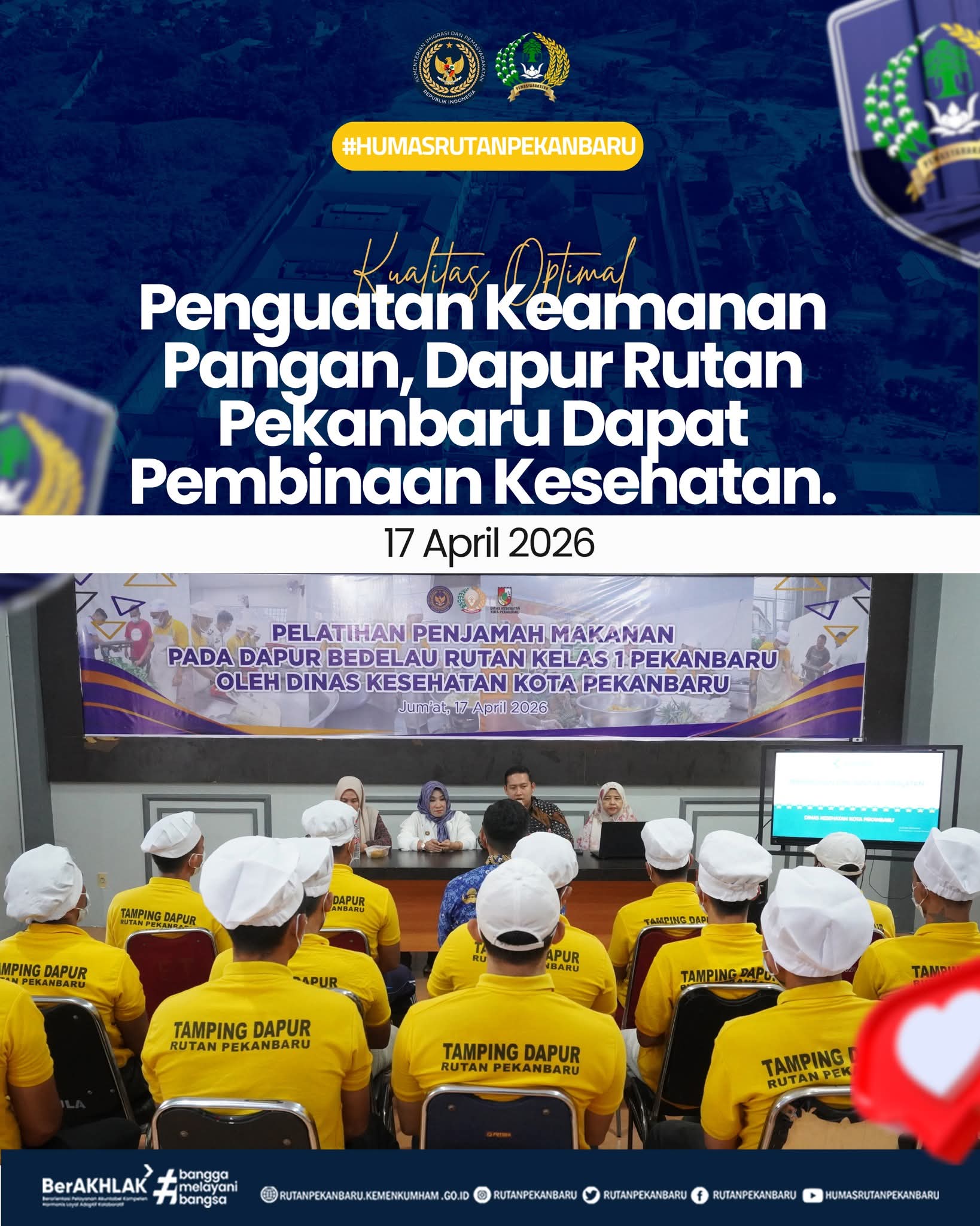 Melalui kegiatan ini, Rumah Tahanan Negara Kelas I Pekanbaru menunjukkan komitmennya dalam meningkatkan kualitas pelayanan. Khususnya dalam penyediaan makanan yang sehat, higienis dan bergizi bagi seluruh warga binaan.