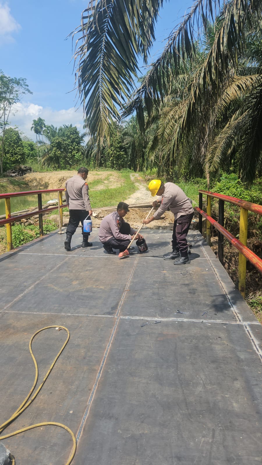 Perwakilan Satgas Darurat Jembatan Merah Putih Presisi Tahap II Polda Riau Aipda Muhammad Yusuf menyampaikan bahwa personel siap memberikan dukungan maksimal hingga proyek selesai.