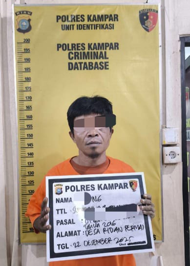 Bangkinang Kota – Sidik-investigasi.com – Satreskrim Polres Kampar berhasil tangkap pelaku berinisial AC (45) warga Kecamatan Bangkinang Kota, Kabupaten Kampar, Senin (22/12/2025) sekira pukul 17.00 Wib.