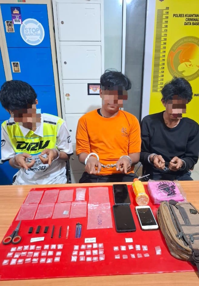 Polres Kuansing Amankan Tiga Kurir Sabu 50 Paket