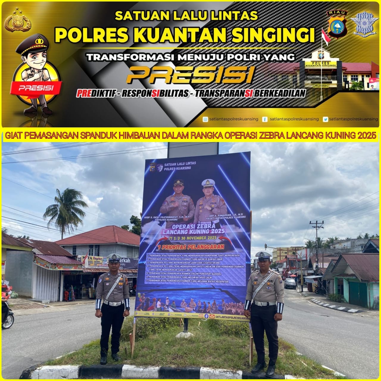 Kegiatan ini menjadi langkah awal Polres Kuansing dalam memberikan informasi kepada masyarakat bahwa Operasi Zebra akan berlangsung mulai 17 hingga 30 November 2025.