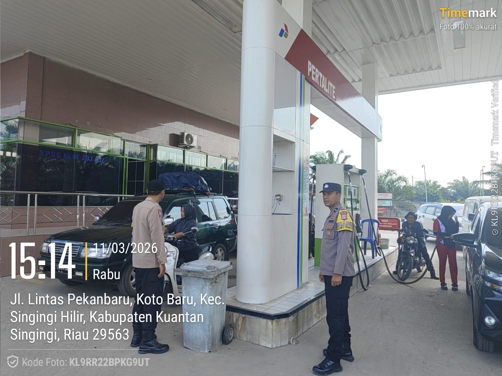 Di wilayah Polsek Pangean, kegiatan patroli dan cek kontrol dilakukan di SPBU PT. Kuantan yang berada di Desa Sako, Kecamatan Pangean.