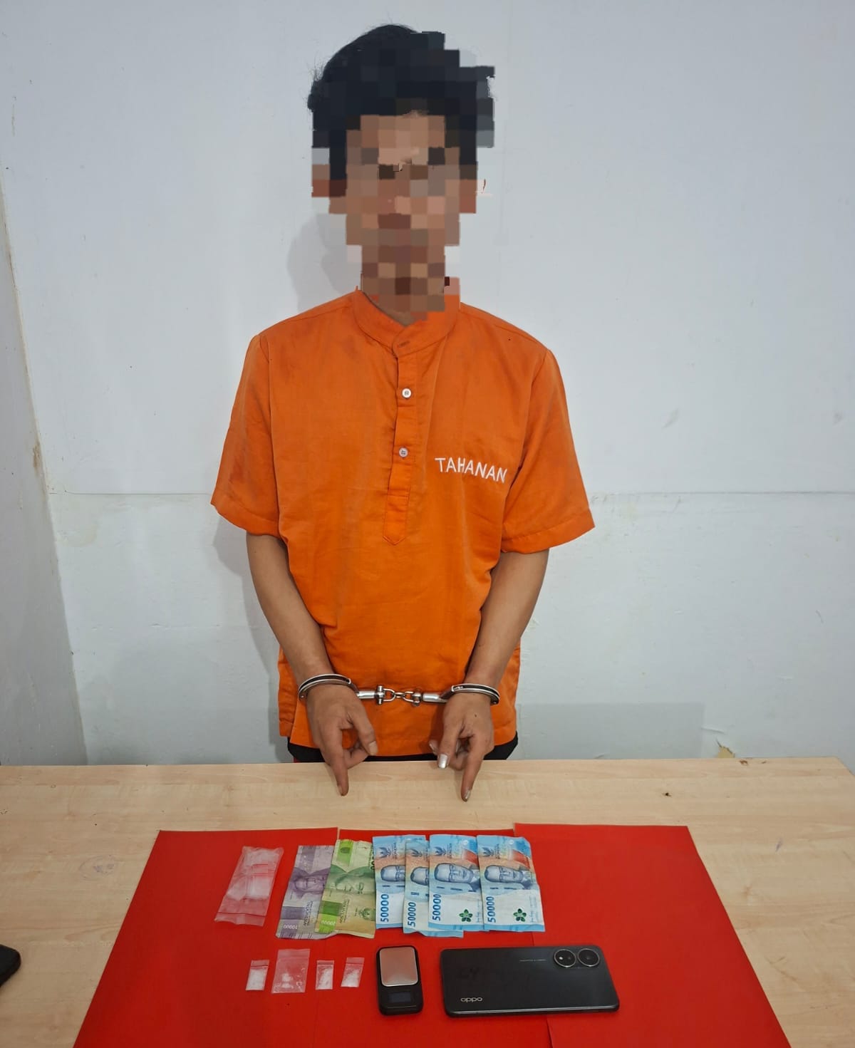 “Kemudian dilakukan penggeledahan badan dan tempat tinggal yang disaksikan oleh perangkat desa setempat, dan ditemukan 4 paket narkotika jenis shabu-shabu dengan berat bruto 1,27 gram, timbangan digital, unit handphone, serta uang tunai sebesar Rp 230.000,”terangnya.