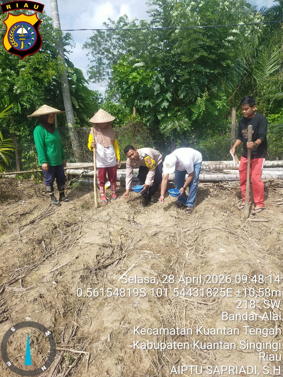 Sidik-investigasi.com – Kuantan Singingi – Dalam rangka mendukung program ketahanan pangan nasional yang menjadi bagian dari Asta Cita Presiden Republik Indonesia, jajaran Polsek Kuantan Tengah Polres Kuantan Singingi melaksanakan kegiatan penanaman jagung pipil di Desa Pulau Banjar Kari, sekitar pukul 09.30 WIB. Selasa (28/04/2026).