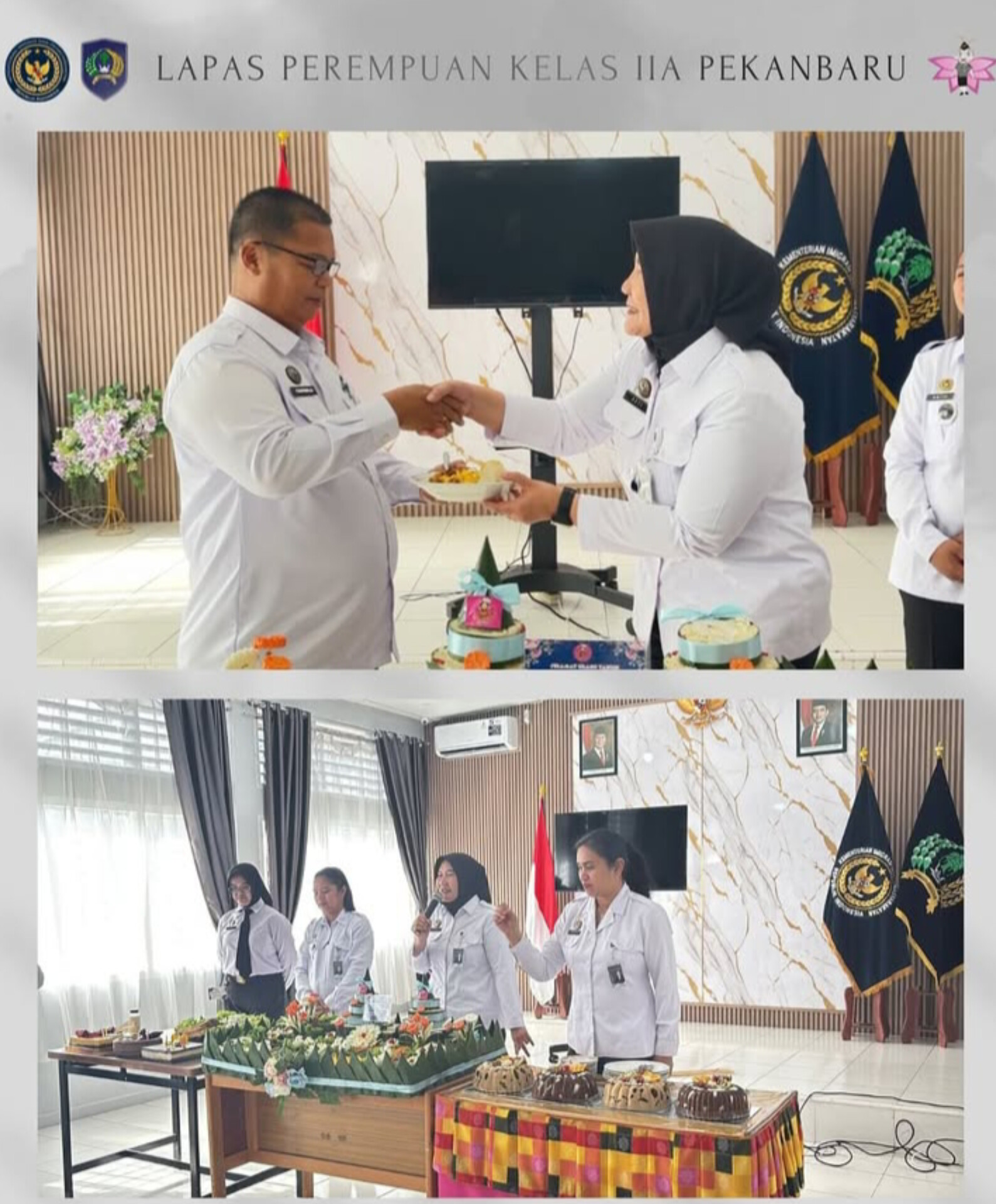 Acara syukuran sederhana namun penuh kehangatan ini digelar di Aula Lapas Perempuan Pekanbaru, dihadiri oleh seluruh pegawai Lapas Perempuan Pekanbaru. Perayaan dimulai dengan doa bersama dan ucapan sebagai ungkapan rasa syukur, dilanjutkan dengan pemotongan tumpeng oleh Kalapas yang kemudian diserahkan kepada perwakilan pegawai sebagai simbol kebersamaan dan kekompakan.