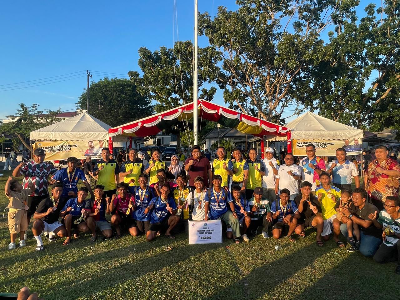 Club dari Busung FC tampil sebagai jawara pada Kompetisi Sepak Bola Bupati Cup 2025 usai menang tipis saat menghadapi Excheel FC pada pertandingan final di Lapangan Hang Tuah Lanal Bintan, Tanjung Uban.