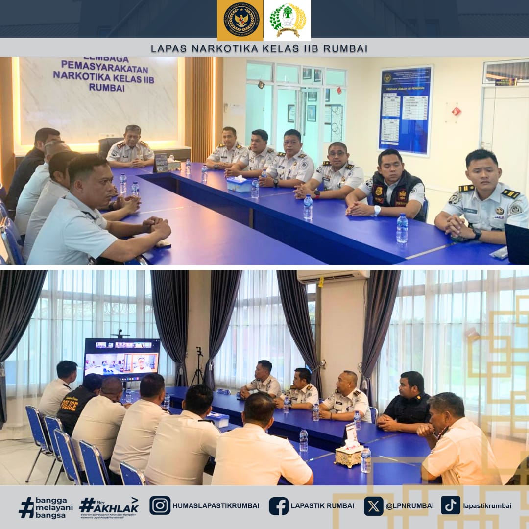 Virtual meeting tersebut diikuti oleh Kepala Kantor Wilayah Ditjenpas Aceh, Sumatera Utara, Sumatera Barat, dan Riau beserta seluruh Kepala Unit Pelaksana Teknis Pemasyarakatan di wilayah masing-masing.